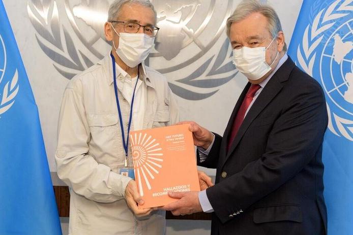 New York, 14 July 2022. The Secretary-General met yesterday, at UN headquarters, with Father Francisco de Roux, the President of Colombia’s Truth Commission, along with fellow commissioners, to receive a copy of the recently issued Final Report of the Commission, a major milestone and achievement of the peace process.