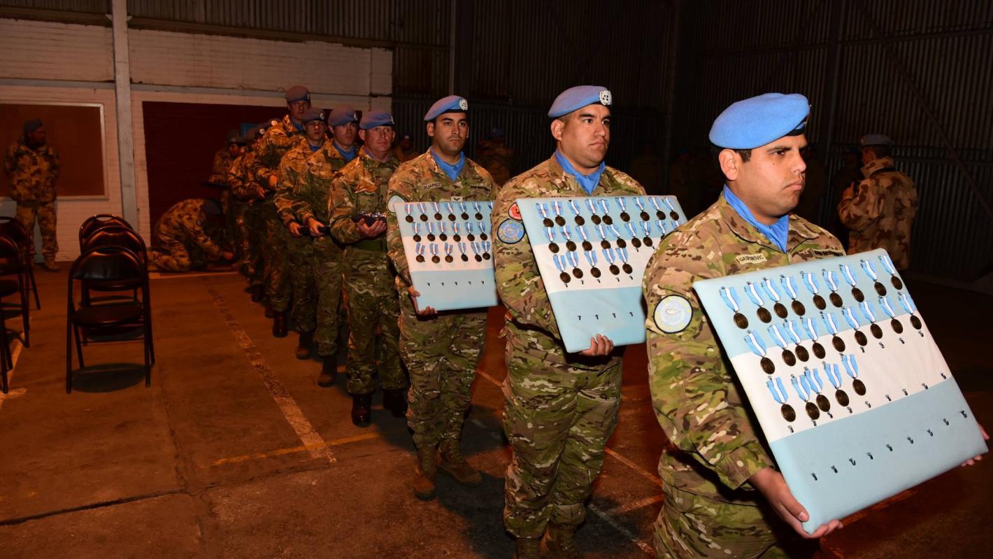2 February 2017 - On Thursday 2nd February 2017, the UN Flight hangar hosted UNFICYP’s annual military Winter Medal Parade. 226 peacekeepers from all three Sectors and from HQ support units proudly marched into the venue, where, in front their ambassadors and other distinguished guests, they prepared to receive UN medals. The UN medal is awarded to all peacekeepers “in the service of peace”; more than 150 000 peacekeepers deserved this award since 1964.