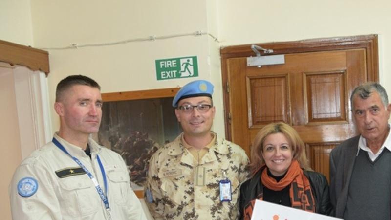 Therapoulla works in the bi-communal village of Pyla, and is supported in spreading the word about prevention of violence against women by the two local Mukhtars (leaders), Mr Nejdet Enver, the local leader of the Turkish Cypriot community, and Mr. Simon Mitides, the local leader of the Greek Cypriot community. Therapoulla has also delivered campaign posters to Dherynia and spoken with women’s groups there; UNFICYP will continue engaging with them as part of our outreach activities in rural areas.